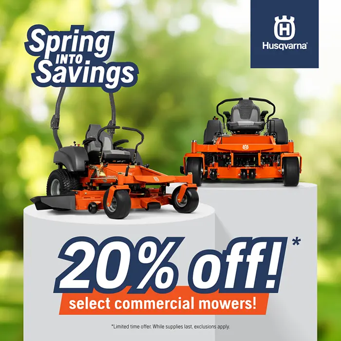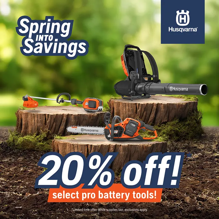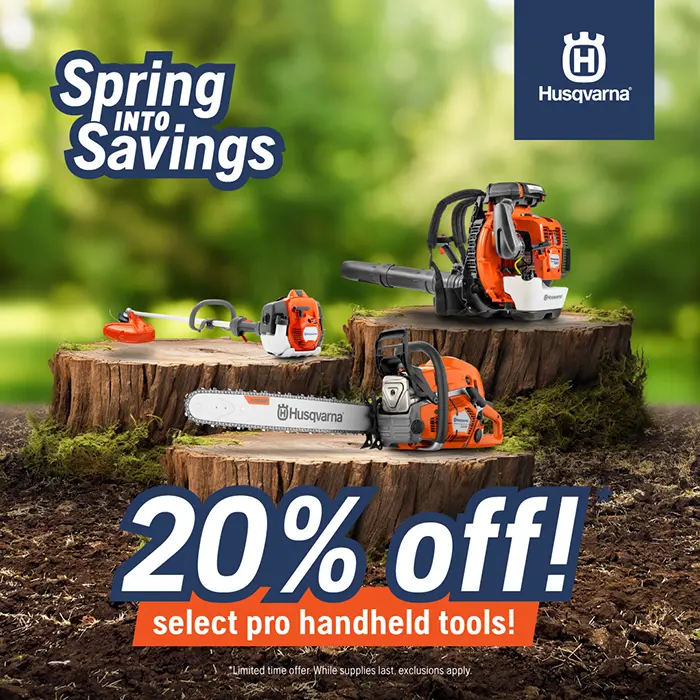 Don’t miss the Husqvarna Spring Savings Event! Are you ready to gear up for spring with unbeatable savings on top-quality Husqvarna equipment? Now’s your chance! Until April 27th, 2024, Husqvarna is offering exclusive discounts on select PRO battery tools, PRO handheld tools, commercial mowers, residential handheld tools, tractors, and zero-turn mowers. But hurry – these offers are only available while supplies last!